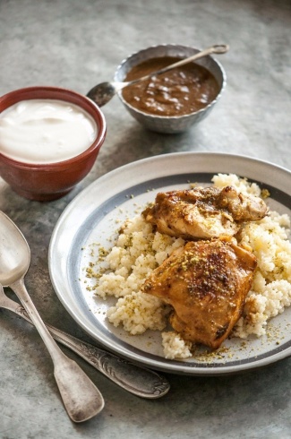 كسكس أو رز مطبوخ للتقديم مع الدجاج