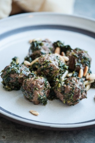 - تُعاد كرات اللحم إلى خليط الكزبرة والصنوبر في المقلاة وتُسكب فوقها مرقة اللحمة. تستمر عملية الطهو على نار متوسطة إلى هادئة لمدة ١٥ دقيقة، وحينها يُصبح الطبق جاهزاً للتقديم.
