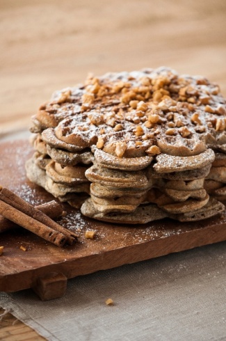 الوافل الأكثر شُهرة هو التقليدي بنكهة الفانيلا والمصنوع بالدقيق العادي المتعدد الاستعمال. ورغم الخيارات المتعددة في ما يتعلق بتحضير الوافل، فقد اخترت اليوم نكهات خريفية محببة الى القلب، ألا وهي التفاح والقرفة. كما أضفت دقيق الحنطة السوداء إلى خليط الوافل لإثراء طعمه، وتعمّدت الاستغناء عن السكر والاستعاضة عنه بشراب القيقب (maple syrup)... لكن يمكنكم إضافة السكر إذا رغبتم في ذلك.